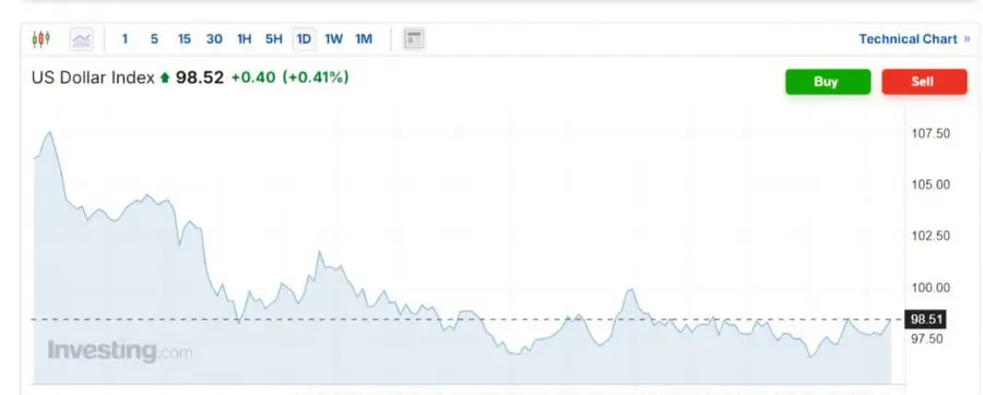 Индекс доллара США (DXY), отражающий курс американской валюты по отношению к основным мировым валютам, повысился на 0,41%. Причинами этого стали политические кризисы во Франции и Японии, которые ослабили евро и иену, что, в свою очередь, увеличило спрос на доллар.
