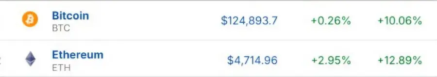 Курс Bitcoin (BTC) увеличился на 0,26%, а Ethereum (ETH) подрос на 2,95%, достигнув 4714,96 доллара за монету. Это происходит на фоне финансовой неопределённости в США и роста институциональных инвестиций в криптовалюты.