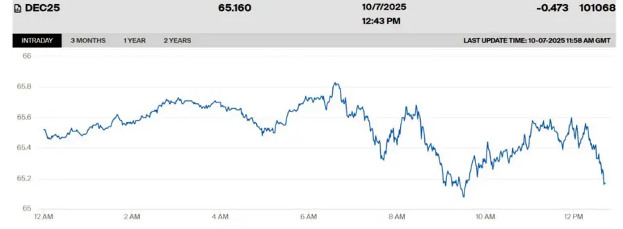 Стоимость нефти снизилась. Увеличение добычи со стороны ОПЕК+ и возобновление экспорта из Ирака привели к росту мировых запасов, что вызвало опасения избыточного предложения. Декабрьские фьючерсы на нефть марки Brent упали на 0,47% и составили 65,16 доллара за баррель, в то время как ноябрьские фьючерсы на WTI снизились на 0,5% до 61,38 доллара за баррель.