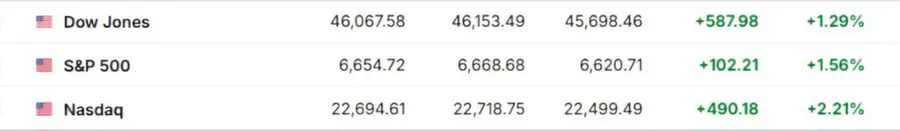 Американские рынки открылись с положительной динамикой, несмотря на напряженную торговлю между США и Китаем и затянувшийся шатдаун правительства. Индекс Dow Jones вырос на 1,29%, S&P 500 - на 1,56%, а NASDAQ повысился на 2,21%.