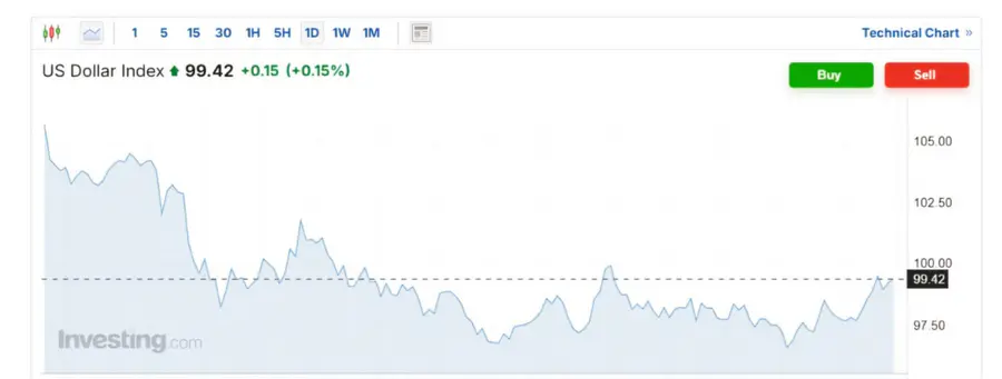 На 14 октября индекс доллара США (DXY), который показывает курс доллара по отношению к основным мировым валютам, укрепился на 0,15%. Это произошло на фоне продолжающейся торговой войны между США и Китаем. Напомним, что Соединенные Штаты ввели 100-процентные пошлины на ряд товаров, а Китай ограничил экспорт редкоземельных металлов. Также страны начали вводить дополнительные портовые сборы, что может вызвать проблемы с перевозками.