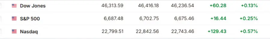 Американские фондовые рынки выросли на фоне ожиданий снижения процентных ставок ФРС. Индекс Dow Jones увеличился на 0,13%, S&P 500 - на 0,25%, а NASDAQ - на 0,57%.