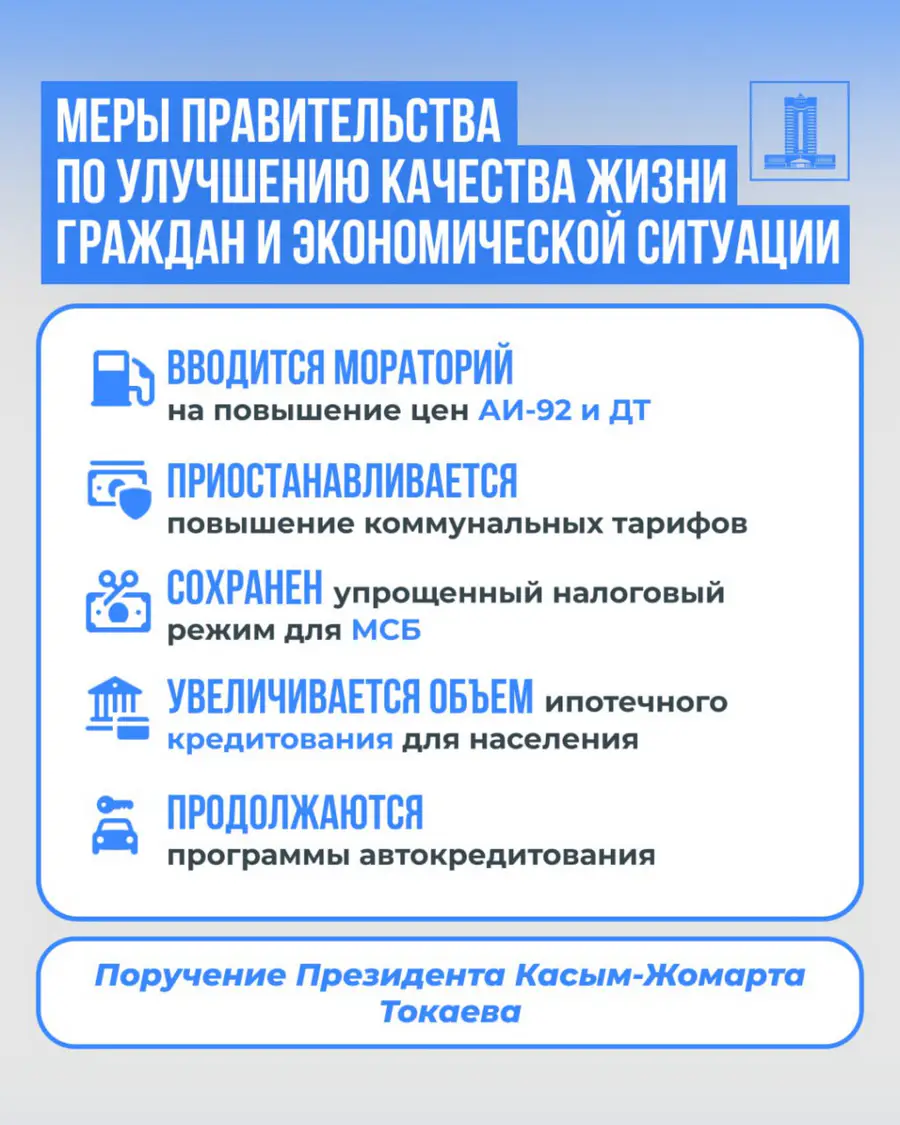 Правительство Казахстана объявило о внедрении ряда мер, направленных на поддержание макроэкономической стабильности и смягчение негативных последствий экономических реформ. Премьер-министр Олжас Бектенов провёл совещание с членами правительства и руководителями государственных органов для обсуждения реализации программы экономических реформ в интересах граждан.