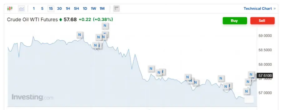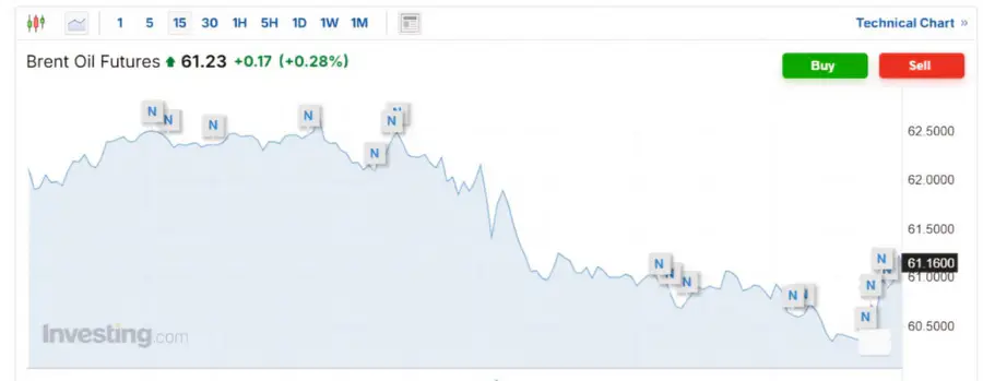Цены на нефть показали рост, чему способствовали ожидания снижения геополитической напряженности после предстоящей встречи президентов США и России, а также краткосрочный спрос на топливо после недавнего падения котировок. Декабрьские фьючерсы на нефть марки Brent выросли на 0,28 процента до 61,23 доллара за баррель, в то время как ноябрьские фьючерсы на WTI увеличились на 0,38 процента до 57,68 доллара за баррель.
