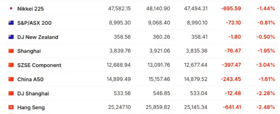 Азиатские рынки закрылись в красной зоне. Индекс Shanghai Composite снизился на 1,95 процента, а Hang Seng - на 2,48 процента. В Японии индекс Nikkei 225 также показал снижение на 1,44 процента.