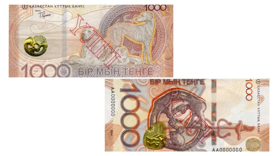Изображение: nationalbank.kzЭта банкнота является четвёртой в серии "Сакский стиль". На её оборотной стороне изображены собаки породы Тобет и Тазы.