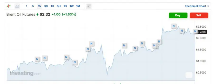 Нефть подорожала на фоне ожиданий заключения торгового соглашения между США, Индией и Китаем, а также благодаря снижению запасов нефти в США и планам по пополнению истощенных резервов. Цена декабрьских фьючерсов на нефть марки Brent возросла на 1,63% и составила 62,32 доллара за баррель, в то время как ноябрьские фьючерсы на WTI увеличились на 1,99% до 58,38 доллара за баррель.