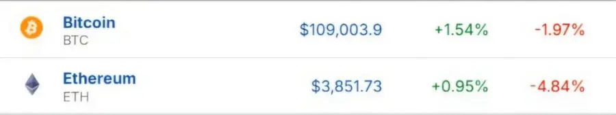 Курс Bitcoin (BTC) увеличился на 1,54 процента, а Ethereum (ETH) - на 0,95 процента, достигнув 3 851,73 доллара за одну монету. Это связано с торговой войной между США и Китаем и восстановлением интереса инвесторов к рисковым активам после недавнего падения рынка. Ожидания снижения ставок в США также способствовали росту цифровых активов.