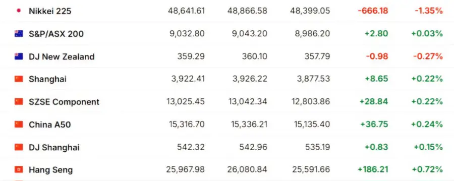 Азиатские фондовые рынки закрылись разнонаправленно. Индекс Shanghai Composite вырос на 0,22 процента, а Hang Seng - на 0,72 процента. В Японии индекс Nikkei 225 снизился на 1,35 процента.