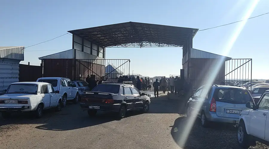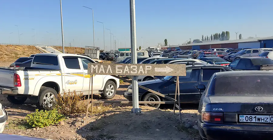 Наша поездка началась рано утром, в семь часов, когда мы прибыли на рынок. На въезде нас удивило количество автомобилей — несмотря на спокойное движение в Мерке, машин было не меньше, чем на алматинском авторынке.