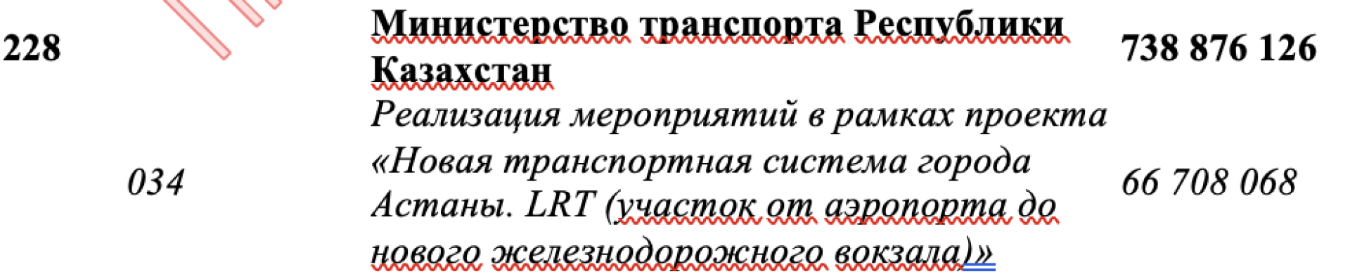 В акимате подтвердили, что сумма в 66 миллиардов тенге действительно включена в бюджет следующего года. Однако, как выяснилось, эти средства не будут использованы на строительство или закупки. Они предназначены для оплаты НДС по проекту LRT. В официальном ответе указано: