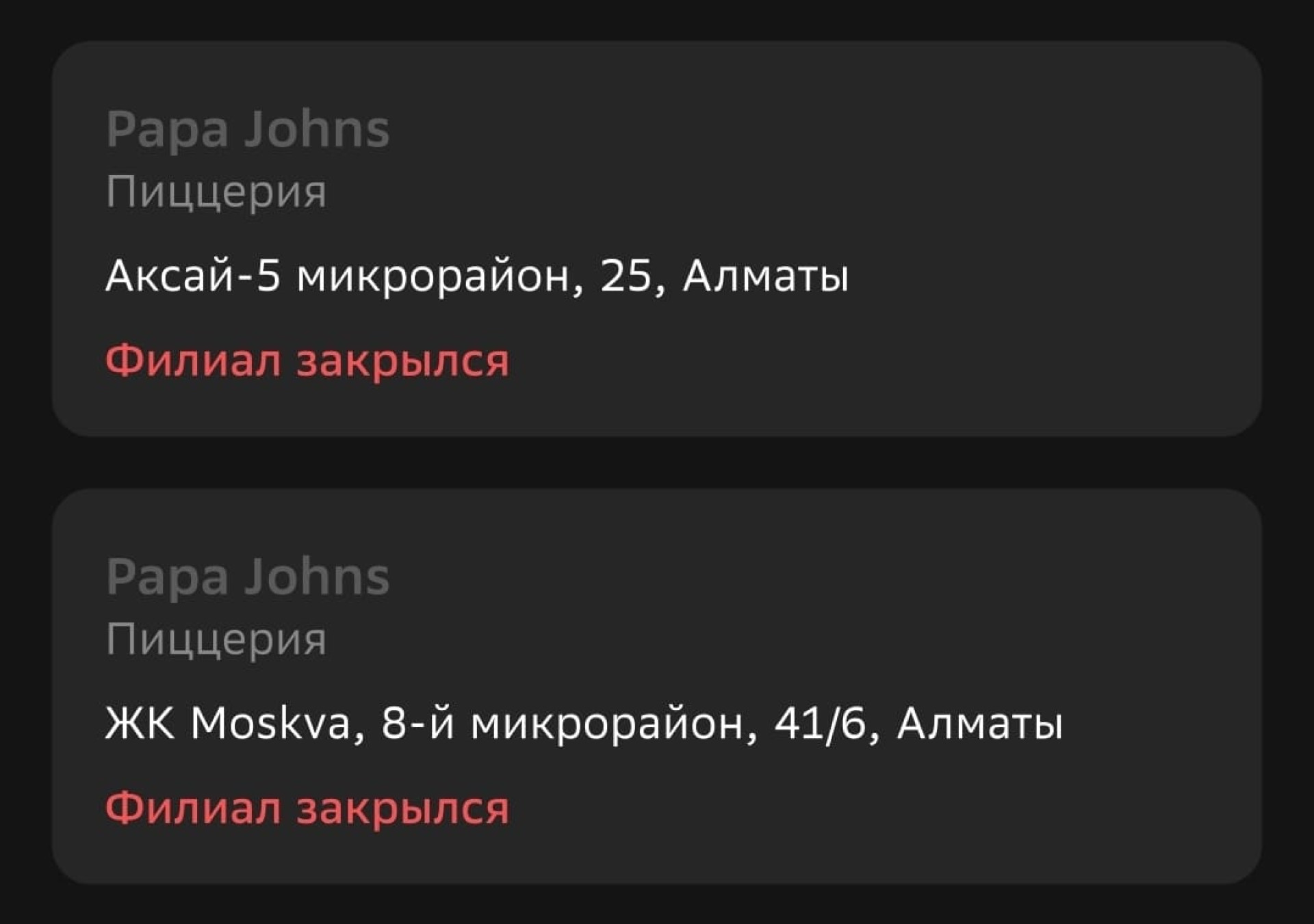 Американская сеть пиццерий Papa John’s прекращает свою деятельность в Казахстане, о чем сообщил ресторатор Данияр Монолбаев. В своем заявлении он отметил, что компания завершает свою работу как мастер-франчайзи Papa John’s в Кыргызстане и Казахстане. Это решение было трудным, но необходимым, из-за продолжающегося падения выручки, увеличения расходов и накопленных обязательств.