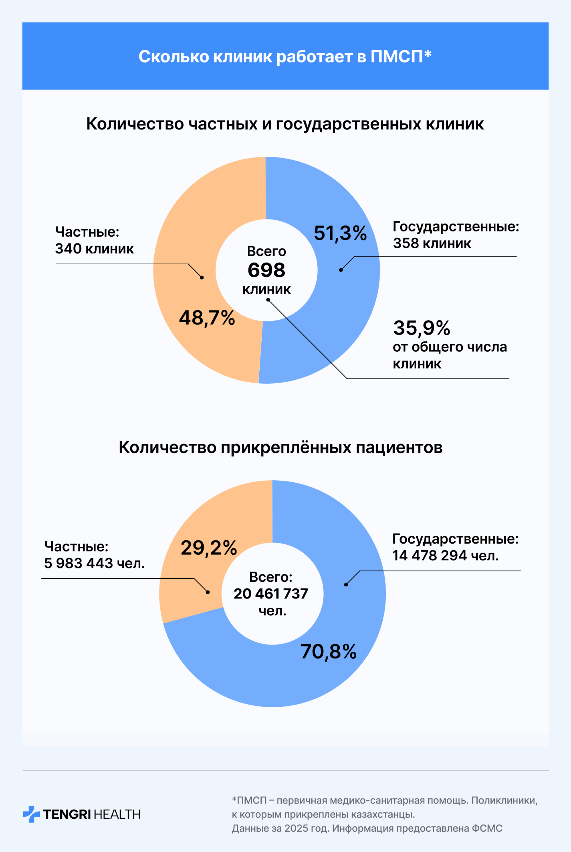 Число частных клиник в ПМСП возросло с 215 в 2020 году до 340 в настоящее время, и количество пациентов, прикрепившихся к ним, увеличилось с трех до почти шести миллионов.