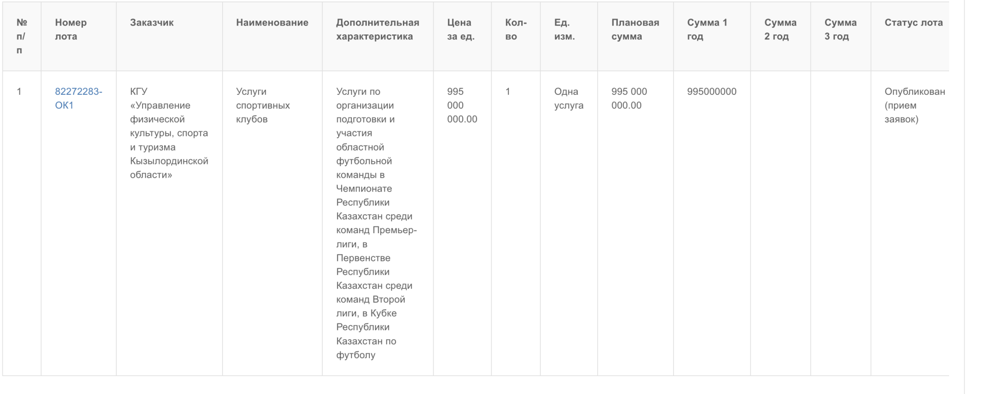 По данным сайта госзакупок, акимат Кызылординской области планирует выделить 995 миллионов тенге на подготовку и участие областной футбольной команды в чемпионате Республики Казахстан среди команд Премьер-лиги, а также в Кубке Республики Казахстан.
